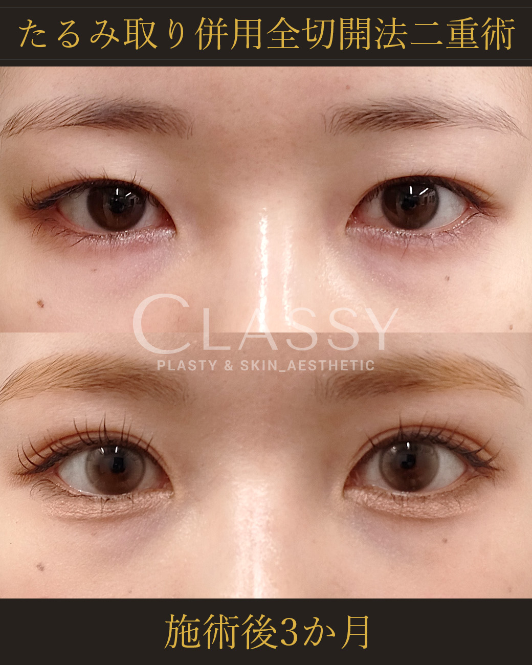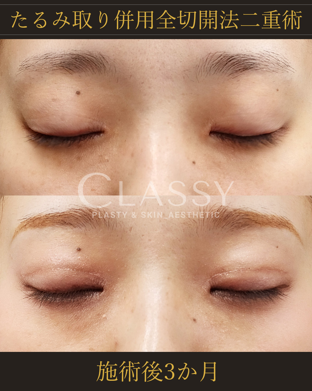 たるみ取り併用全切開法二重術(目の上のたるみ取り)
